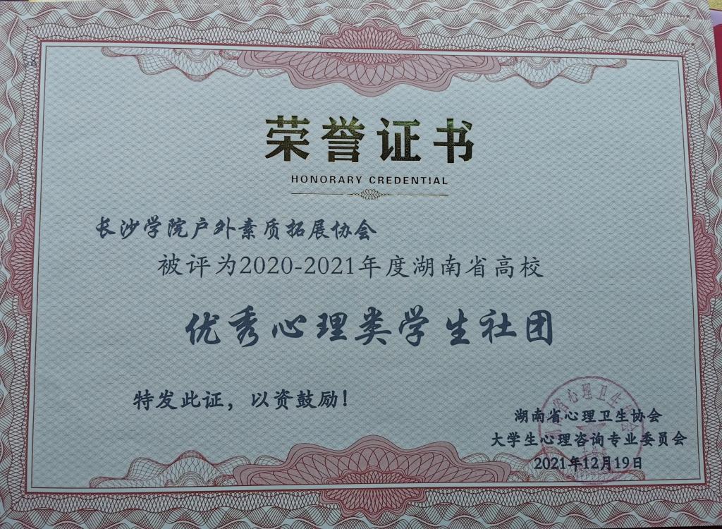 我校户外素质拓展协会被评为湖南省高校“优秀心理学类社团”。