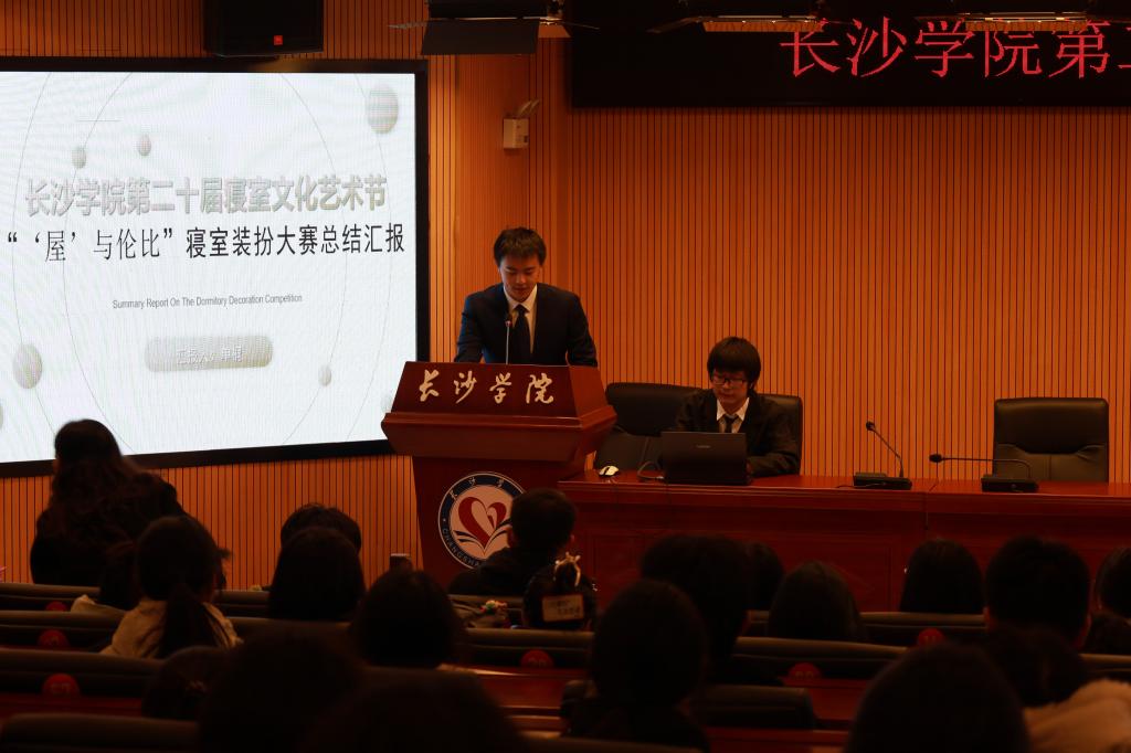第五届校自委会会长单桐同学对“‘屋’与伦比”寝室装扮大赛活动作总结汇报。在本次比赛中,参赛成员群策群力、团结协作,积极发挥主观能动性和创造性,对寝室进行精心装扮,共同打造更加舒适的学习环境和生活空间。